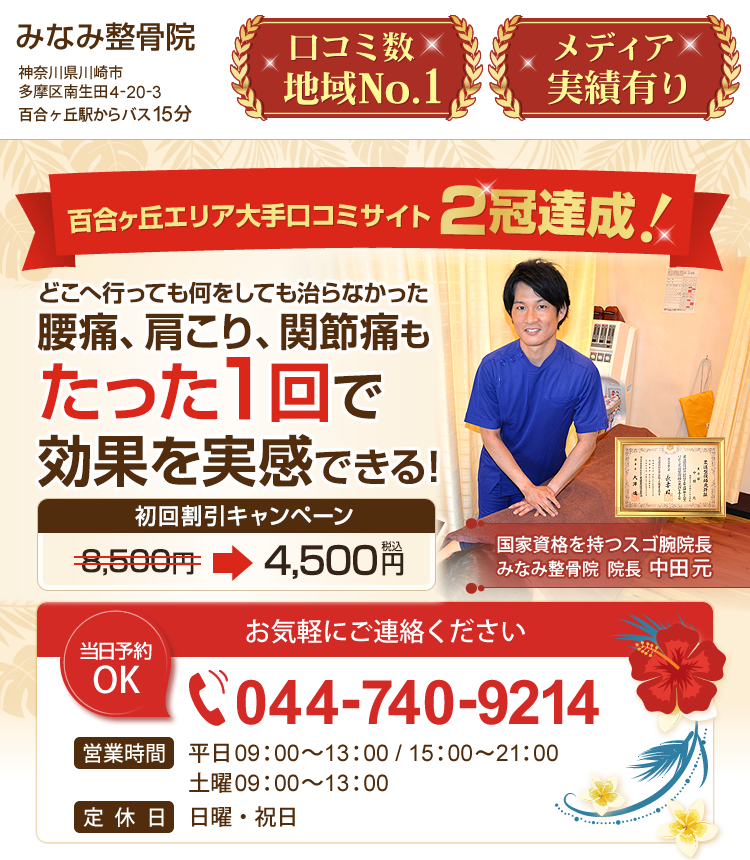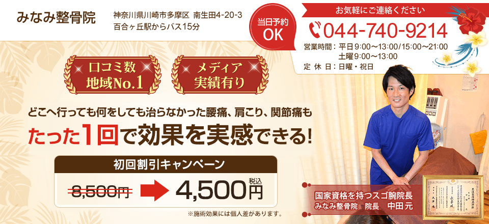 すぐに治療の効果が出て、通うたびに悪いところを改善してもらえて、身体が楽になっている