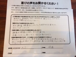 【当院の整体を受けてみて、ここは良かったという点を教えて下さい】