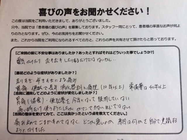 胃痛・便秘で長年消化器科に通院(10年以上)、常備薬は40年以上